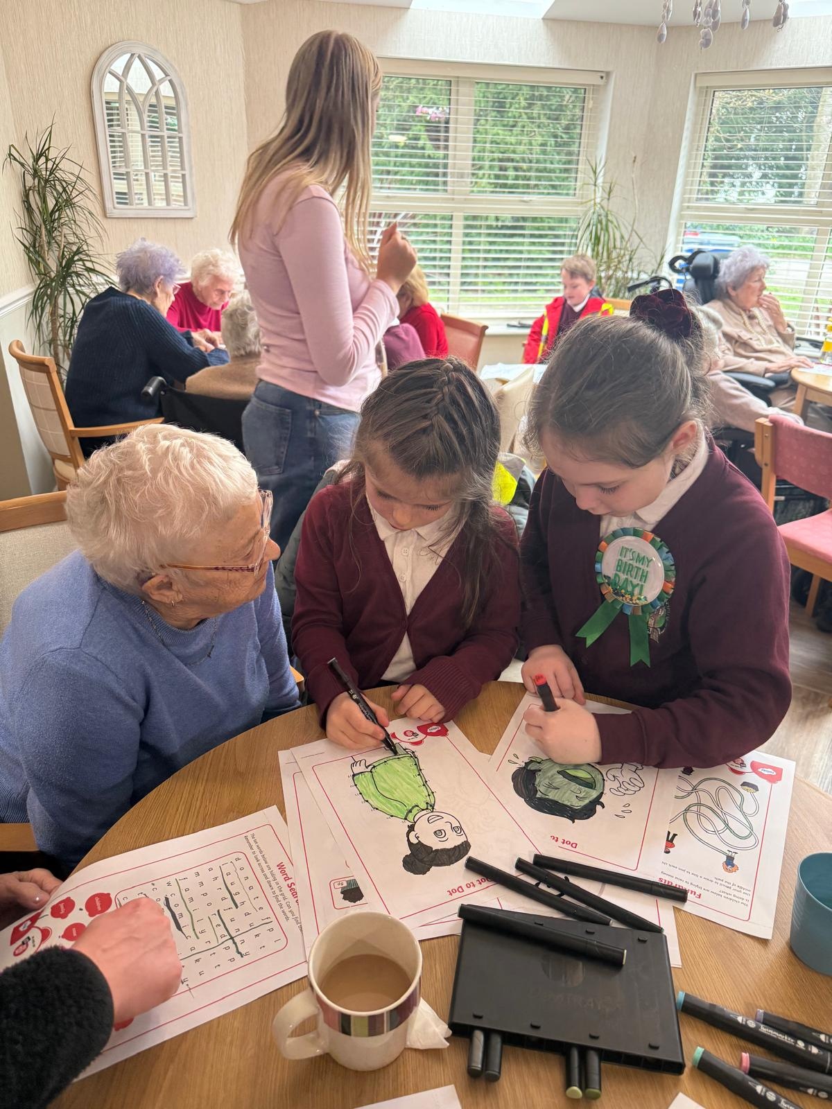 Pupils in Dosbarth Beaumaris enjoyed a special visit to Ashgrove today! They have sang for the residents and spent some time completing crafts and activities for Red Nose Day. They spent also enjoyed a surprise visit to the gardens and having a treat!