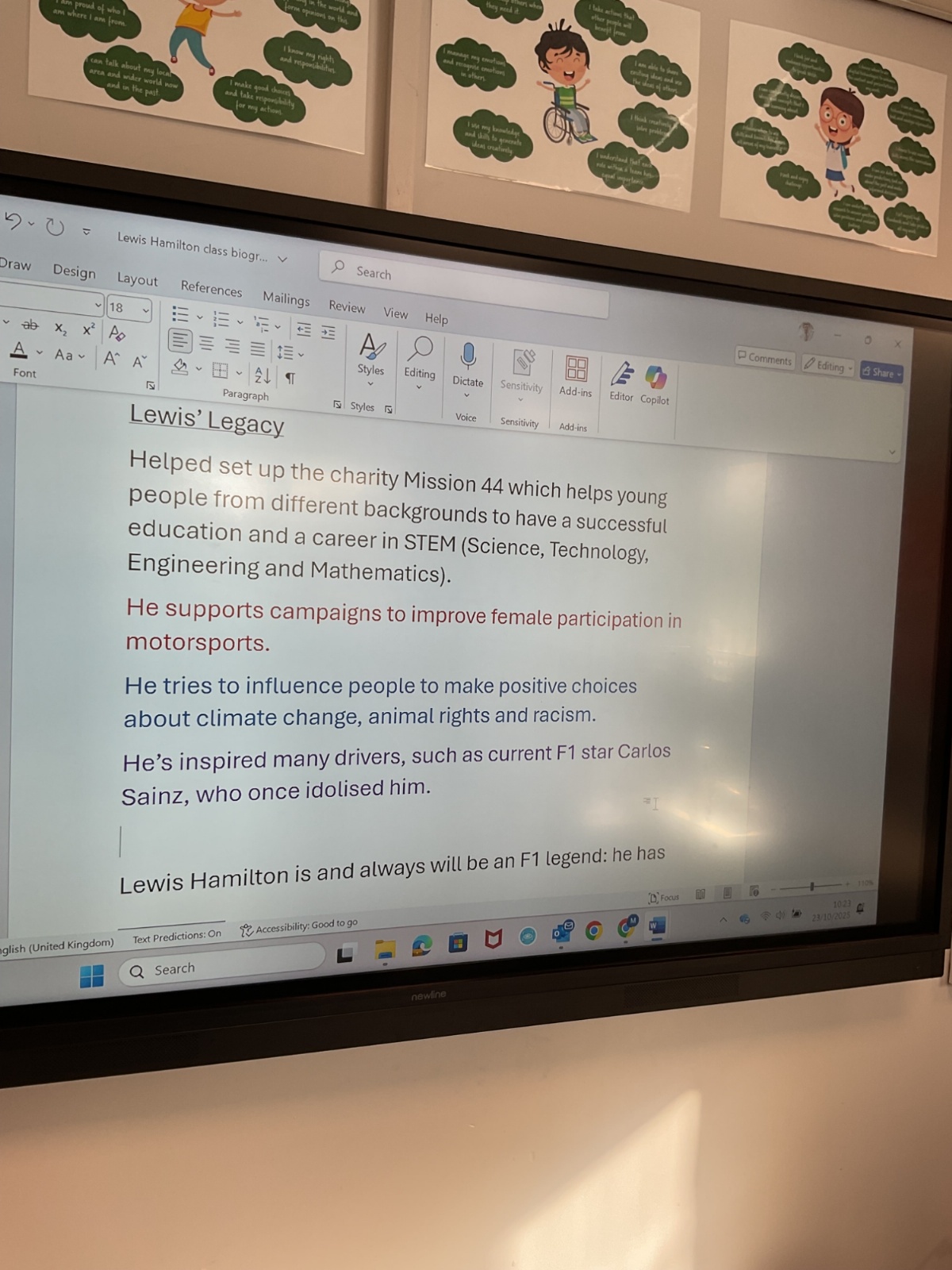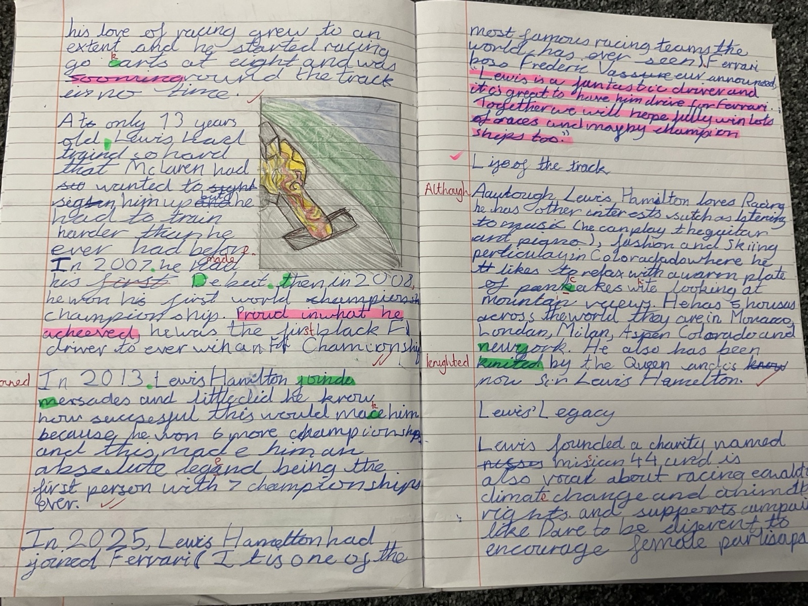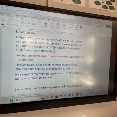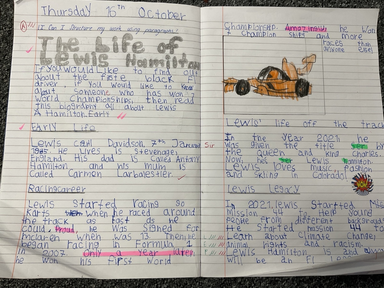 We have worked hard to develop our biographical writing skills this week, with a focus on developing our work on Lewis Hamilton as part of our F1 in Schools project.