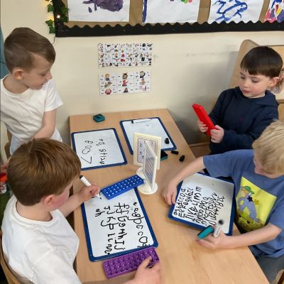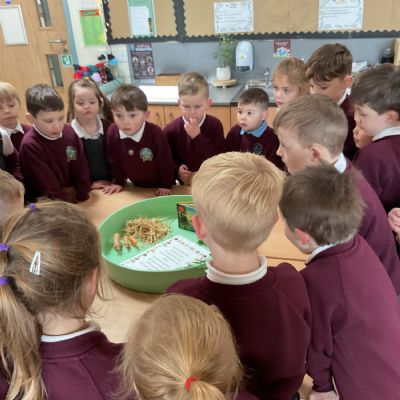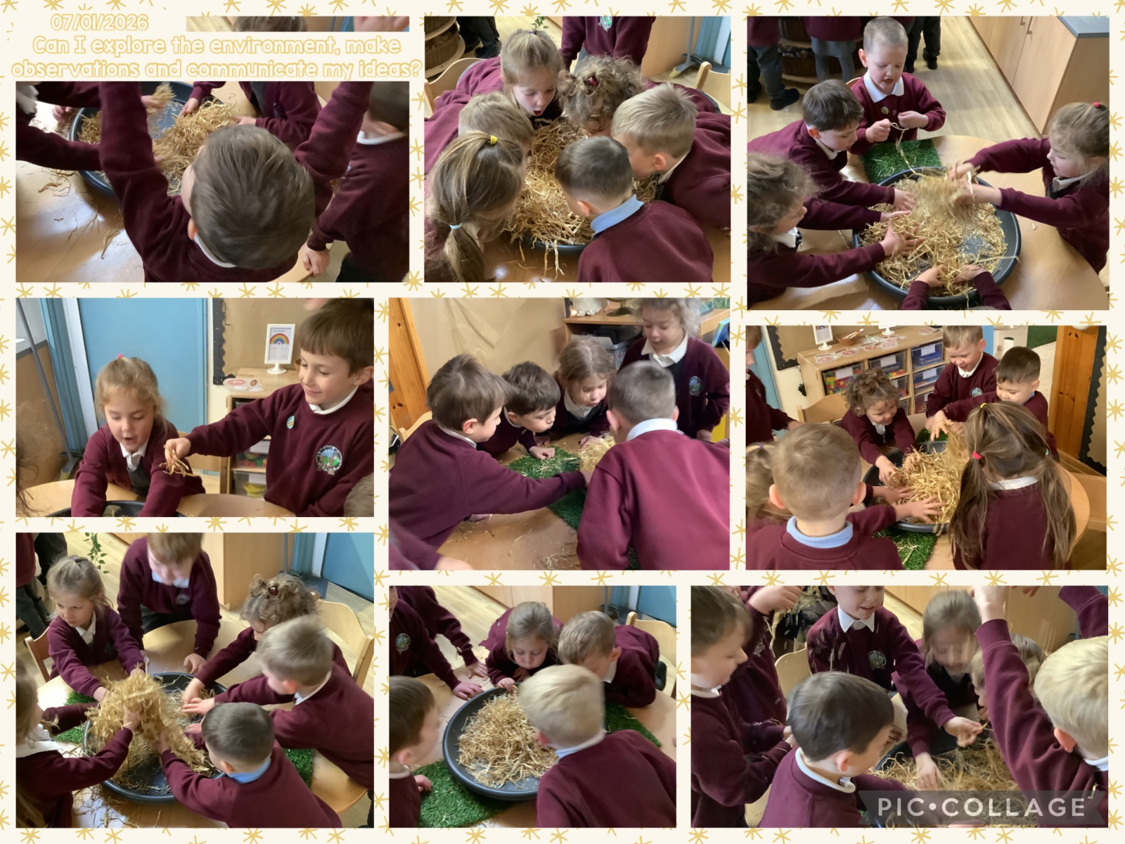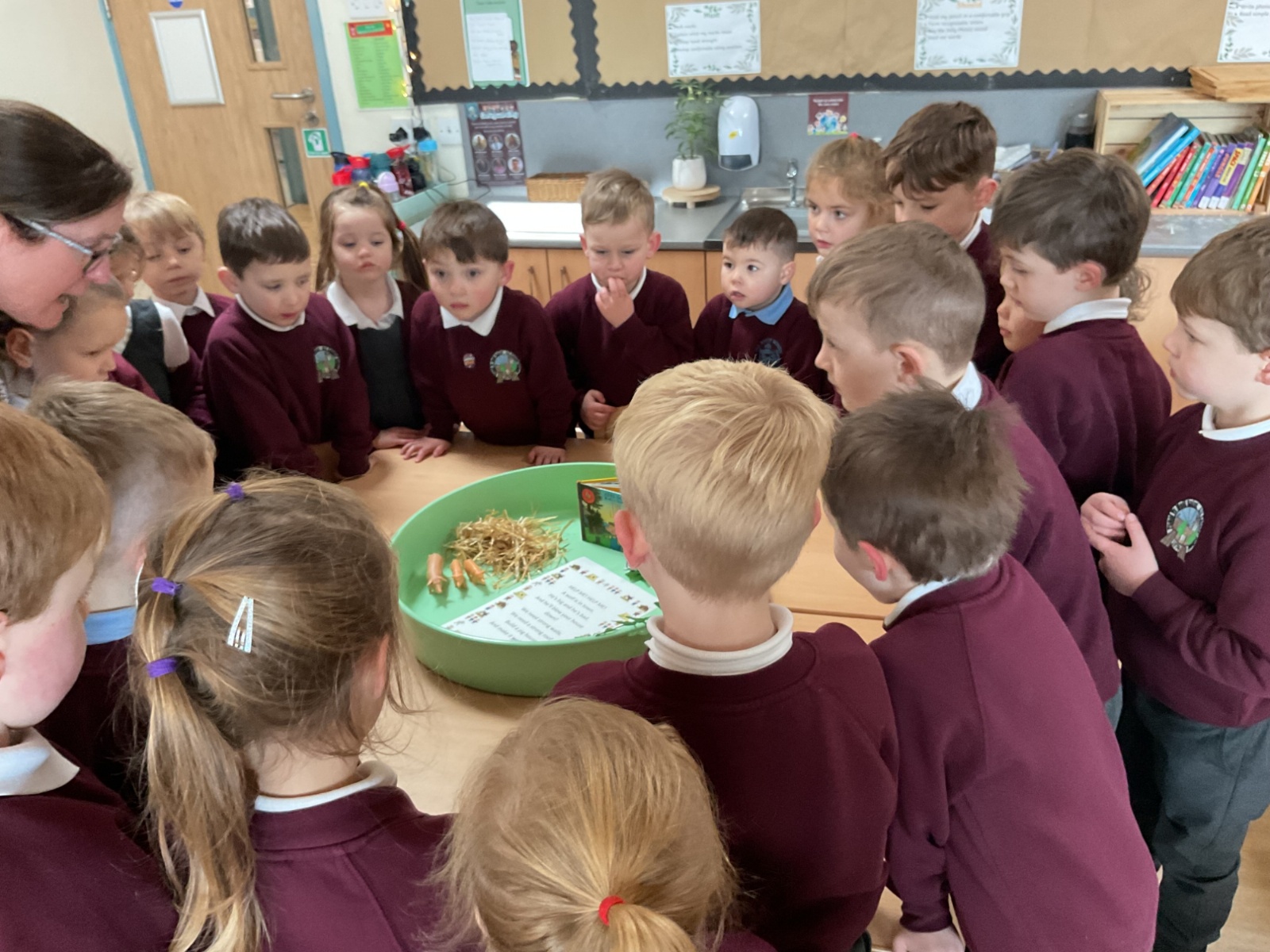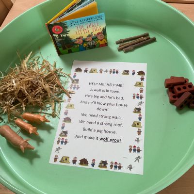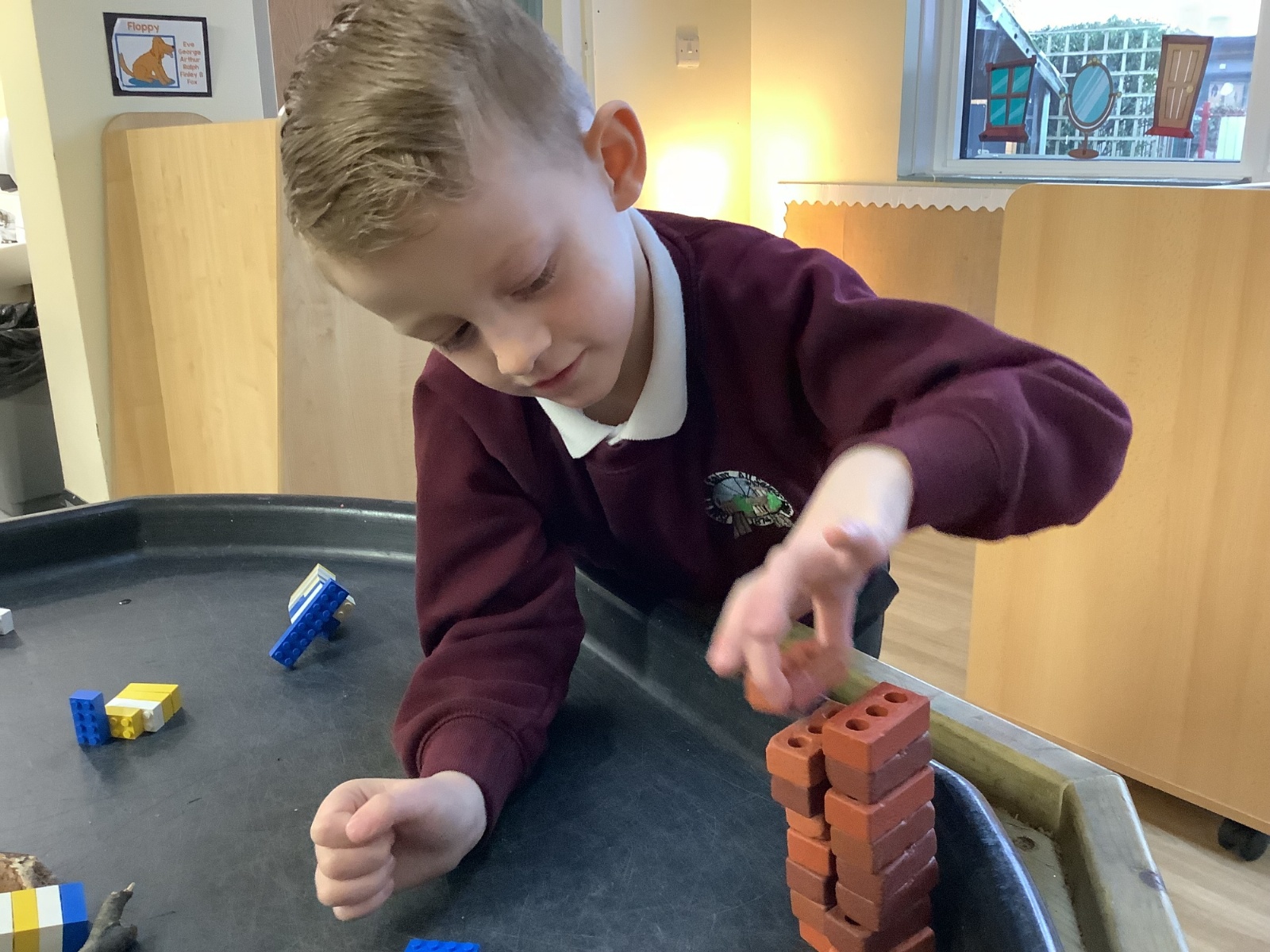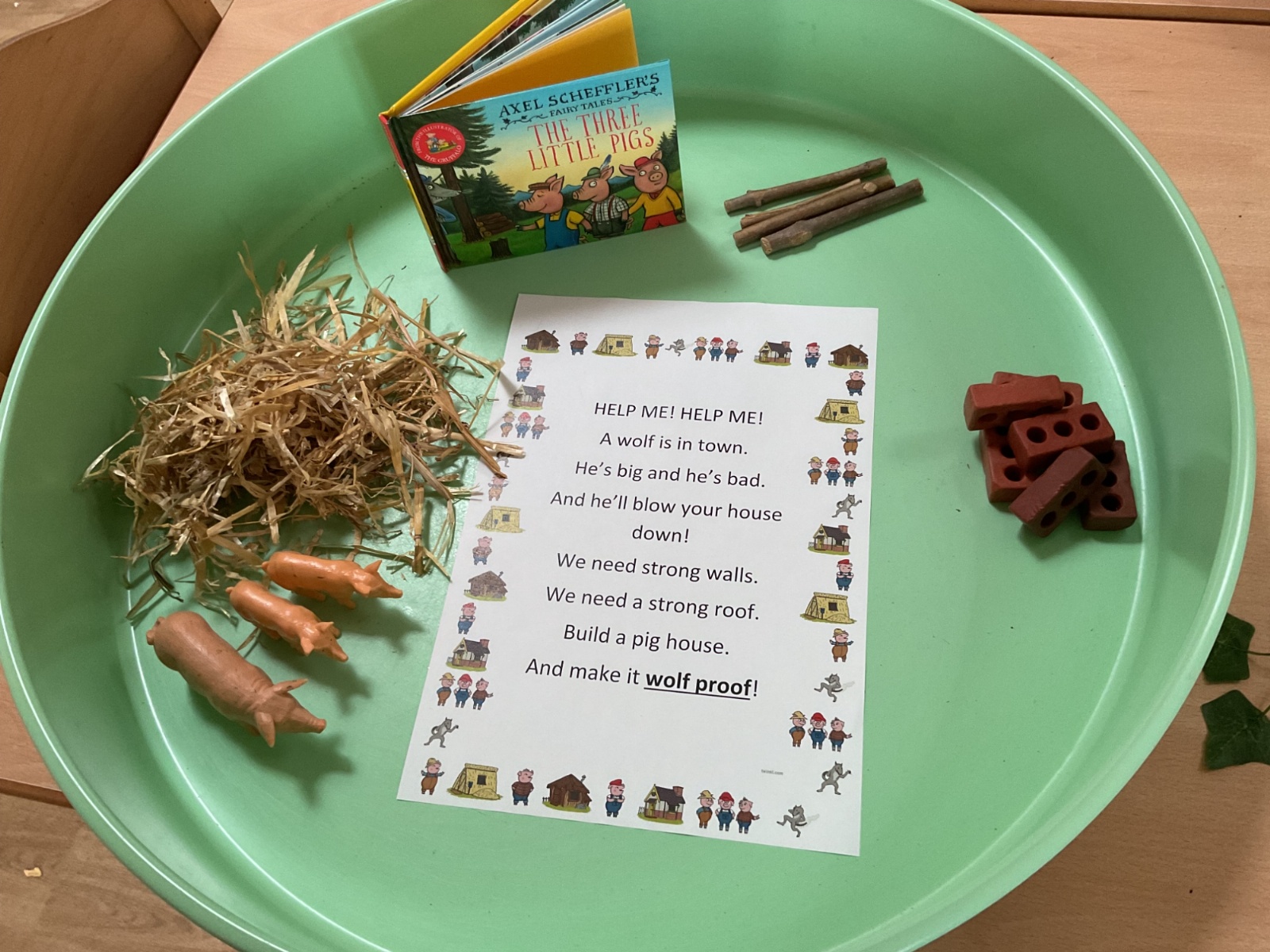 Pupils enjoyed our immersive discovery session. We received a letter from the Three Little Pigs asking for our help to build a wolf-proof house. The children explored the properties of sticks, straw and bricks to decide which would be the best!